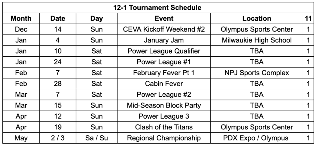 Tournaments requiring overnight travel are not included in the team’s regular schedule or season dues.