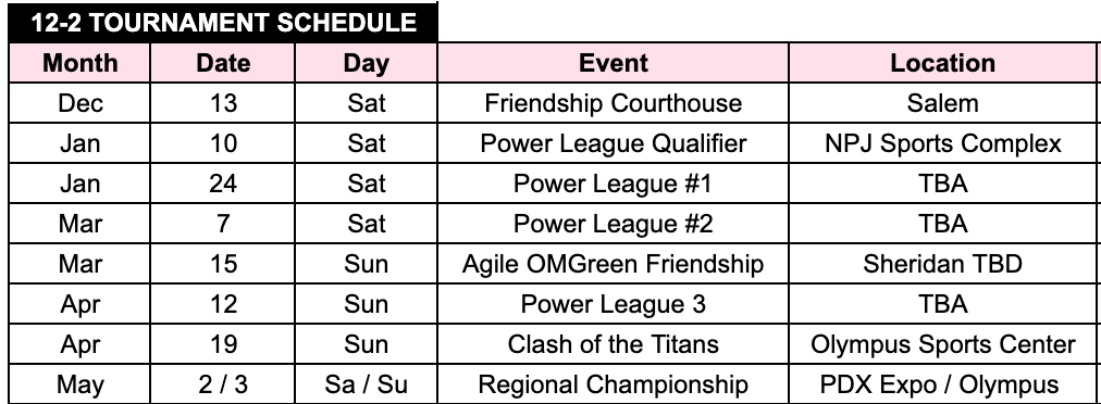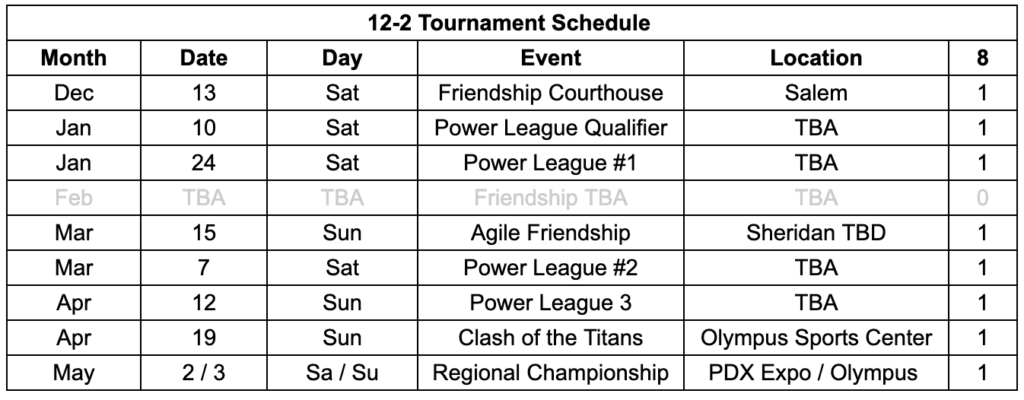 Tournaments requiring overnight travel are not included in the team’s regular schedule or season dues.