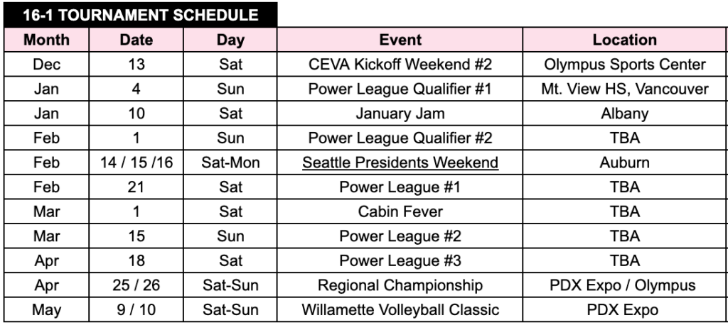 Tournaments requiring overnight travel are not included in the team’s regular schedule or season dues.